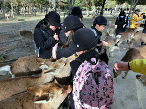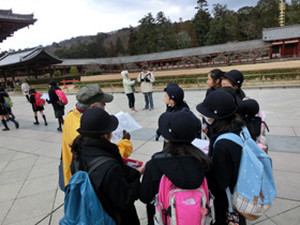 東大寺でもボランティアガイドさんが詳しいお話を聞かせてくれました。世界最大規模の木造建築を目の当たりにして、子ども達からは驚きの声が挙がっていました。