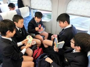 横浜線で新横浜に移動した後、最初の見学場所である奈良に向けて新幹線と近鉄特急を乗り継ぎます。新幹線の車内では友だちと楽しい一時を過ごしていました。