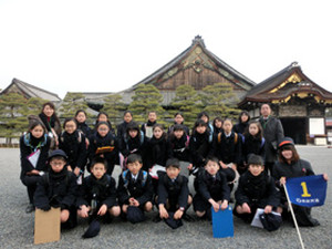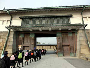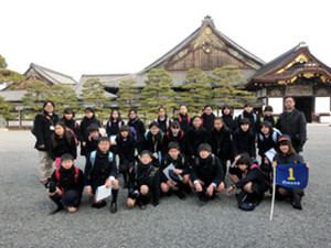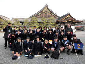 ここでは、二の丸御殿を見学しました。御殿の前で、各クラスで集合写真を撮りました。