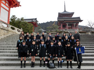 やっと清水寺に到着し、クラスごとに記念写真を撮りました。