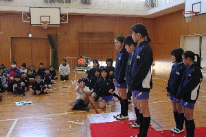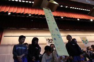 司会の合図でくす玉が割られると、「たのもしい6年生ありがとうございました」と書かれた垂れ幕が出てきました。