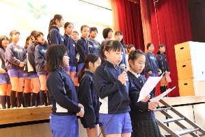 ステージに6年生が全員並ぶと、5年生の司会でプログラムが始まりました。