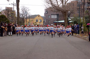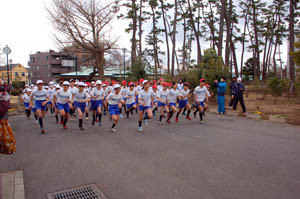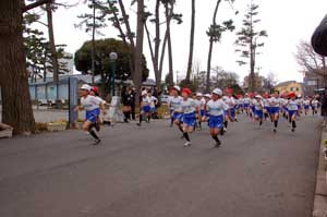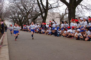 教室での開会式を終え、早速、4年生と3年生が学年ごと、日ごろの練習の成果を競います。キャンパス内につくられたコースで1000mの距離を走りました。