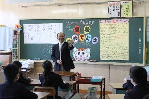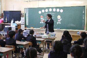 今朝も校長先生が、玄関の前で子どもたちを笑顔で迎えています。