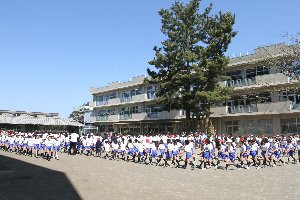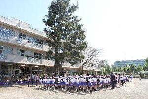 日頃の朝会で、全校でリズムに合わせ、姿勢よく歩く練習しておくことが大切です。