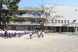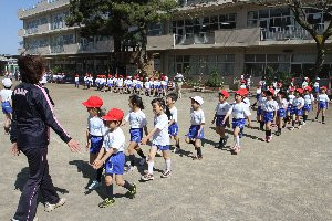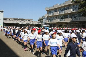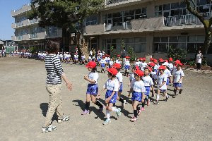 校長先生の話の後、子どもたちは体育主任の合図で行進をしながら教室に戻ります。