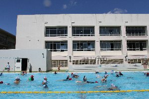 プールでは、4年生が合同で水泳に取り組みました。