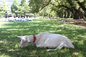 山羊のミルクは強い日差しを避けて木陰で一休み。