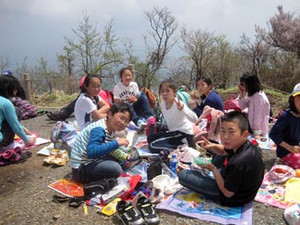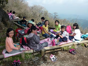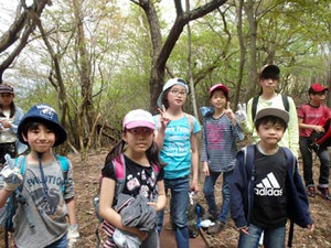 5、6年生は、たてわりチームに分かれて大山の登山に挑戦しました。ごつごつした岩や滑りやすい土の斜面に苦戦しながらも、仲間と励まし合いながら最後まで諦めない気持ちをもって臨むことができました。リードしてくれる6年生の姿は、5年生にとても頼もしく写ったはずです。これから学校全体を引っ張っていく高学年として、お互いに支えあう気持ちづくりができた登山となりました。