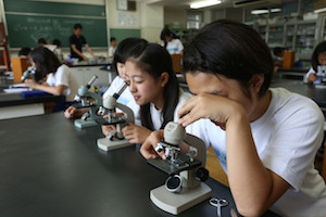 理科室では6年生が顕微鏡を使って植物の気孔などを観察していました。
