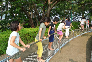花時計の周りは、足つぼを刺激する健康歩道になっています。