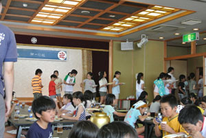 お昼ごはんは、みんなの大好きなハヤシライス。お代わりの行列ができています。