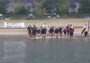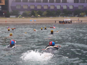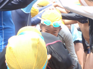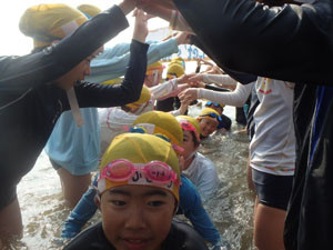 いよいよ、遠泳本番です。一番長く泳ぐチームは、