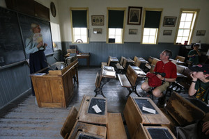 当時のままの郵便局や小学校には、当時の服装で局員や先生が案内をして、古い時代へみんなを誘ってくれました。