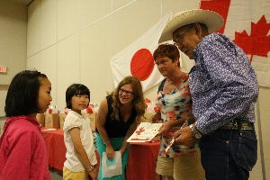 ウェルカムパーティでは、スタッフの方々やオコトクス市長代理の方から挨拶をいただき、小学部校長、子供たちの代表も挨拶をしました。
