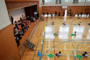 保護者の皆様には、舞台と体育館の側面に間隔をあけて入場していただき、参観していただきました。