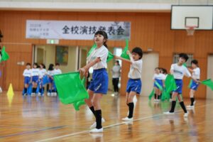 10月8日(木)と9日(金)の二日間、体育館で異学年のペア学級ごとの全校演技発表会が行われました。