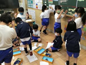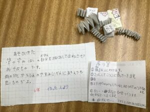 ある、雨の日の昼休み、子ども達が6年生のお手紙を見ながら一生懸命バネを作っていて、工作大会が行われていました。