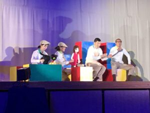 この日は、体育館が劇場と変化します。今年度は、感染対策として密にならないように、間隔をあけて客席を作るため、2回公演で行われました。