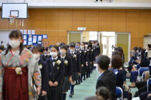 コロナ禍の中、保護者と卒業生の兄弟関係児童のみが参加した卒業式でした。