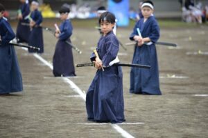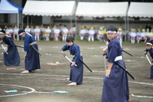 午後のスタートは小学部の伝統演技 5,6年生男子による「剣舞」です。今年も凜々しく舞いました。