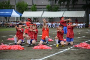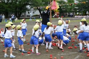 今年は、親子ではなく子どもたちだけで挑戦。 1年生玉入れ