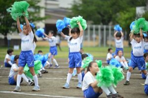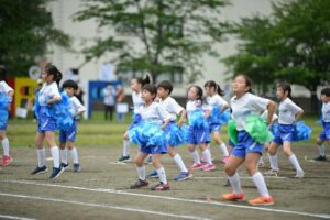 午前のラストは全校演技パート1 低学年の保護者の皆様に見ていただきました。