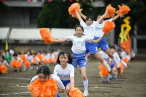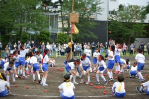 保護者の参観を各家庭1名に限定したり、児童が直接組み合ったり密になるような騎馬戦、綱引きなどの競技をさけて実施しました。