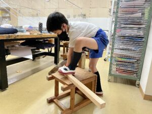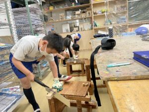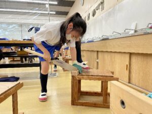 3年生の図工をのぞきに行くと、小さな大工さんがたくさんいました。