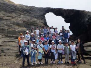 馬の背洞門をバックにクラス写真を撮った後、しばらく自由散策をしました。
