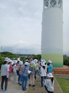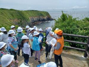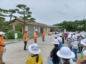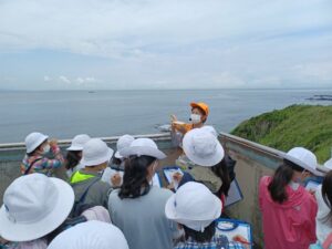 城ヶ島公園に着くと、ボランティアガイドさんが待っていてくれました。全体で挨拶をしたら、クラスごとに見学のスタートです。