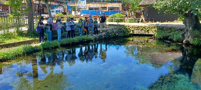 今日の天気は、素晴らしい夏空です。忍野八海からは富士山もバッチリとみることができました。