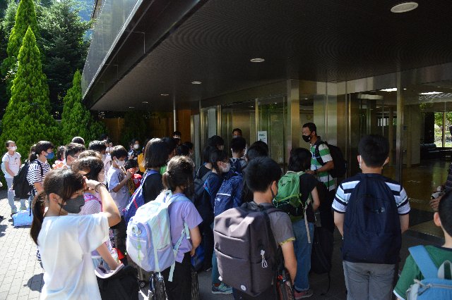 朝は、学年が半分で少し寂しい気がしましたが、子どもたちは元気いっぱい。4年生以来、久しぶりの宿泊行事にワクワクが止まらない感じでした。