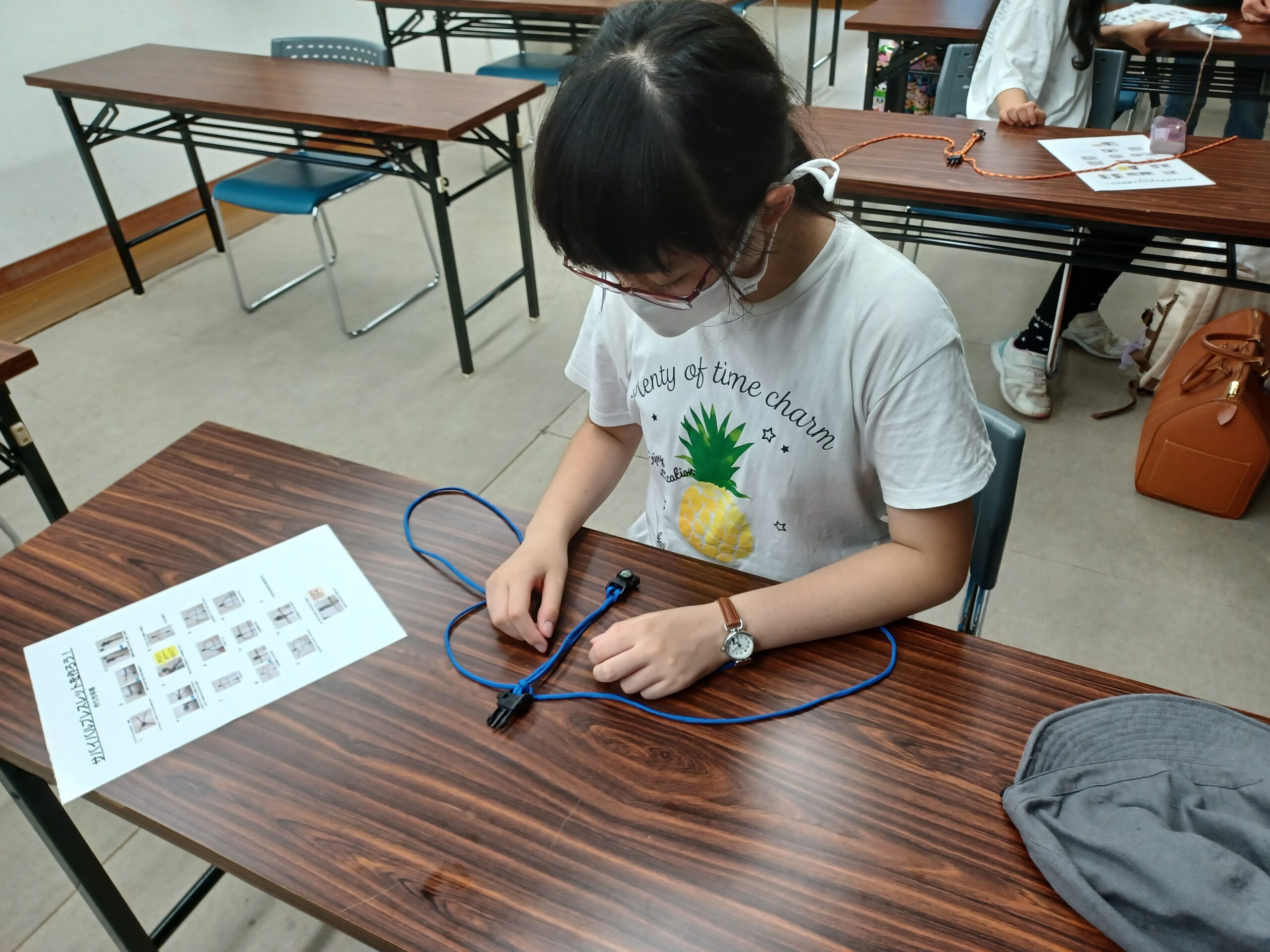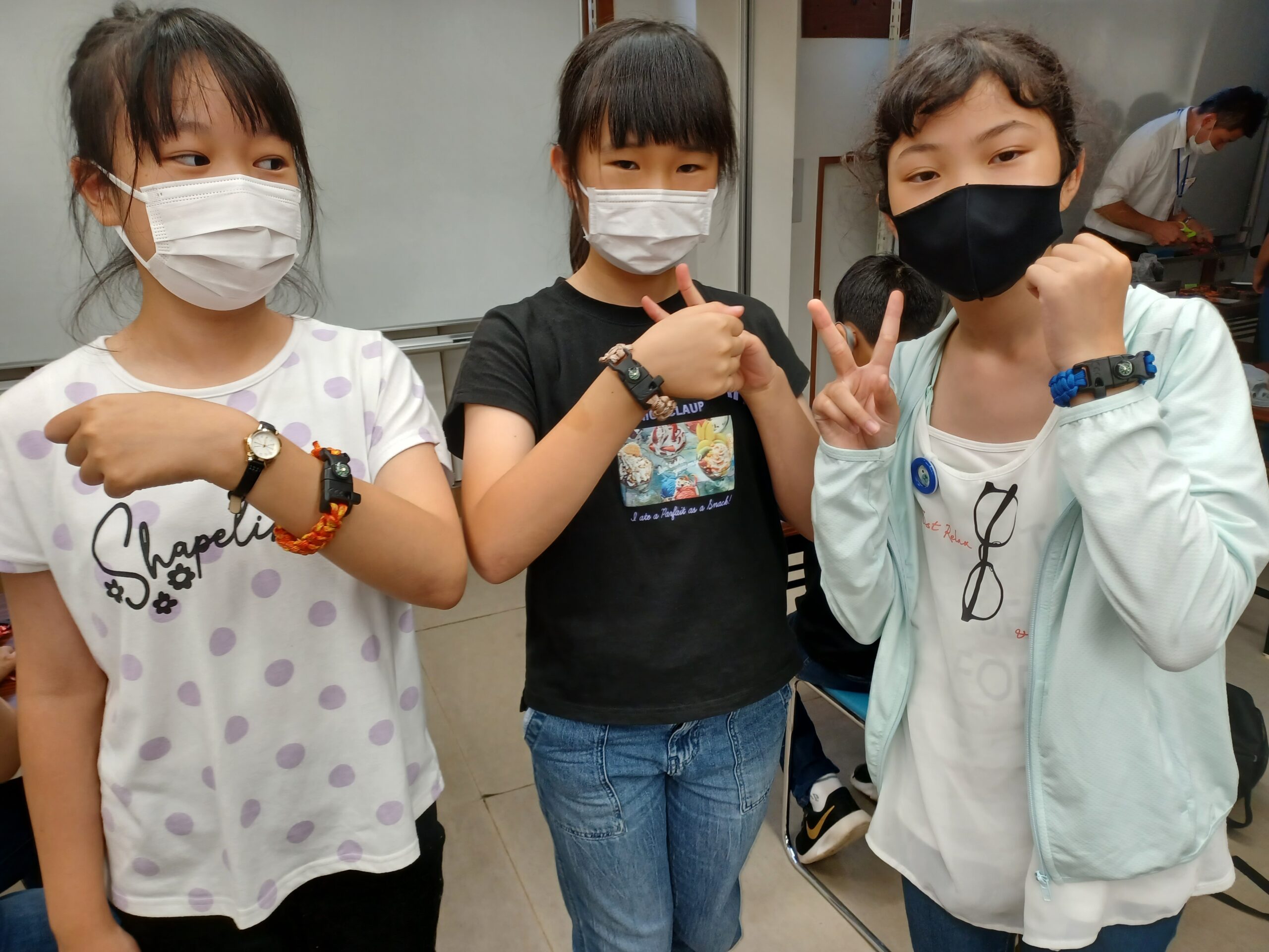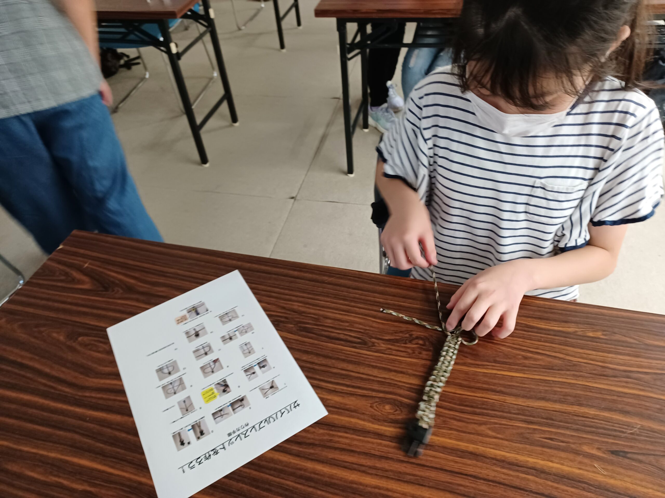 みんな、難しい編み込み作業に丁寧に取り組み、友達と協力しながら、素敵なサバイバルバンドを作ることができました。