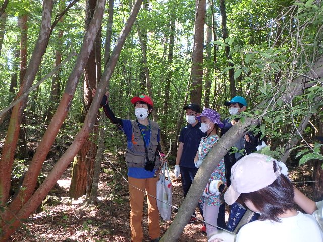 青木ヶ原樹海は溶岩の上にできた森です。このような森ができる仕組みやそこの育っている植物や動物の話など、それぞれのガイドさんが工夫を凝らしてお話をしてくださいました。