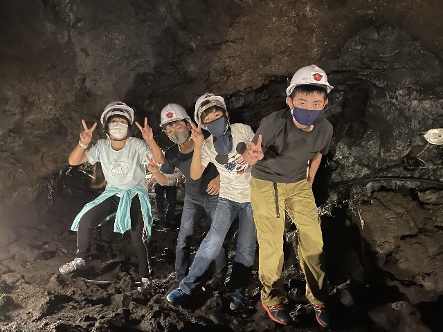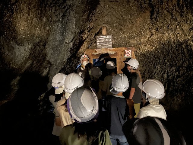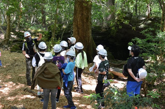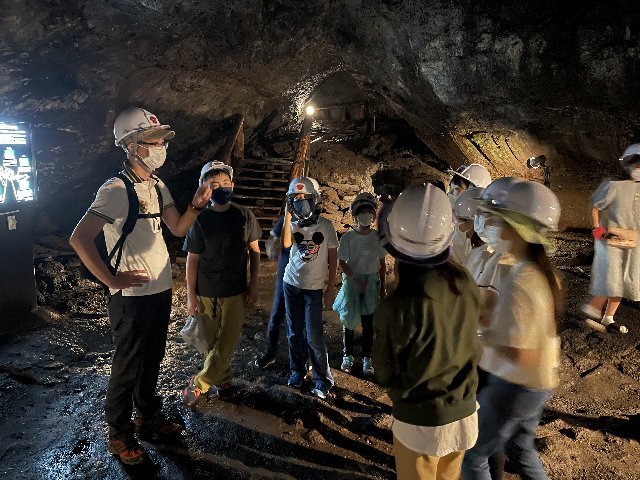 コウモリ穴に入る前に、溶岩ドームのでき方やコウモリ穴の入り口の構造などについて学習しました。