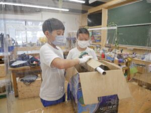 他の子たちも、自分たちの作業をしながら、「先生、あっち見に行って来て良いかな。」「ちょっと覗いてきて良いかな。」と気になってしまうほどの存在感を放ったこの道具は、実は彼らの手作りです。