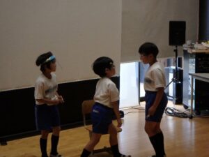 その日、なぜか帰りの挨拶がいつもとは違いました。いつもは、玄関を出る時に「さようなら!」と元気に帰るのですが、「See you!」や「Good bye!」といって帰る子が見られるようになりました。今回の発表を通して、少し英語に対する楽しさや親しみが増したのだと思います。