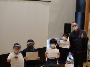 発表後、英語の先生方から一人ひとりに合った賞を全員がいただきました。子どもたちは、名前を呼ばれると嬉しそうに賞状をもらいに出て行きました。もらった賞状をじっくりと眺め、お友だちと見せ合うなど、初めての英語の賞状がとても嬉しかったようです。