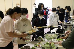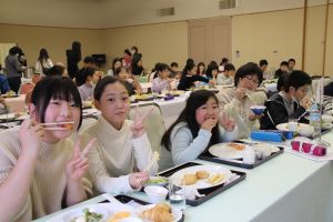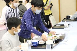 食べ終わったお皿などは、班ごと食器をまとめて片づけます。こういったことも校外学習の大切な学びです。