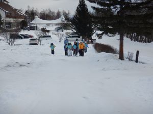朝食後、ゲレンデに移動。ホテルからは少し歩きます。