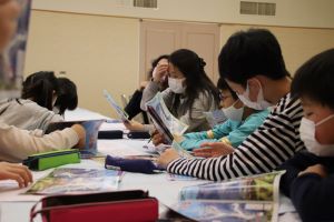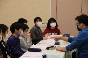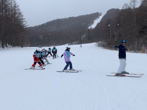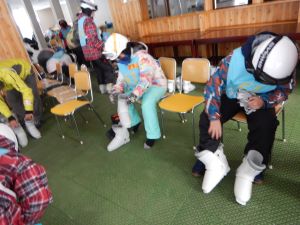 夕食後、明日午前中の練習に向けて、ミーティングを行いました。それぞれ目標は違えども、楽しくスキー技術の向上ができればと子どもたちは考えています。