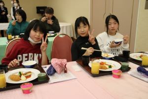 今日は一日中、スキーの練習が続きます。たくさん食べて練習に備えます。