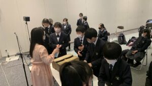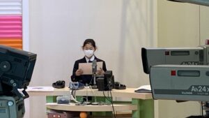 今回は、一人ひとつずつ役割を担い、番組作りに携わりました。普段画面上では見えない仕事も経験し、「たくさんの人の力があって、番組は作られている」ということを体験を通して学ぶことができました。係ごとに、スタッフの方がつき、丁寧に機械の操作方法や仕事内容を教えて下さった後、リハーサルをしてから本番の収録をしました。緊張していた子どもたちでしたが、機械を身につける様子はなかなか様になっていました。テロップを1つ出すことにもタイミングに気を使う必要があり、間違えてしまうと放送事故に繋がると考えると、とても緊張しました。体験してみないと分からないこの緊張感を体験させてあげることができ、本当に良かったと感じました。