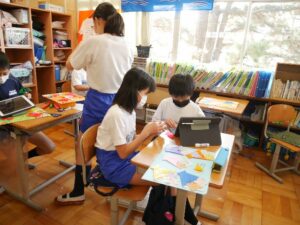 6年生一人ひとりに渡すことができるよう、1~5年生全員のメッセージを集めて、1つの作品にするということは、子どもたちが思っている以上に大変なことでした。係の子たちは事前準備として数え切れないほどのメッセージカードを切り、クラスごと、縦割りごとに袋詰めをしました。また、今年度の5年生は6年生よりも人数が少ないため、1チームが担当する数もたくさんあります。限られた時間の中で、「こんなにあるの!」と言いながらもお互いに声をかけながら頑張って進めていました。しかし、作業開始時には「大変・・・」という気持ちが大きくても、やっているうちになんだか楽しくなってくるのが5年生の良いところです。絵を書いたり、折り紙で飾り付けをしたりと、楽しくデコレーションをしていました。