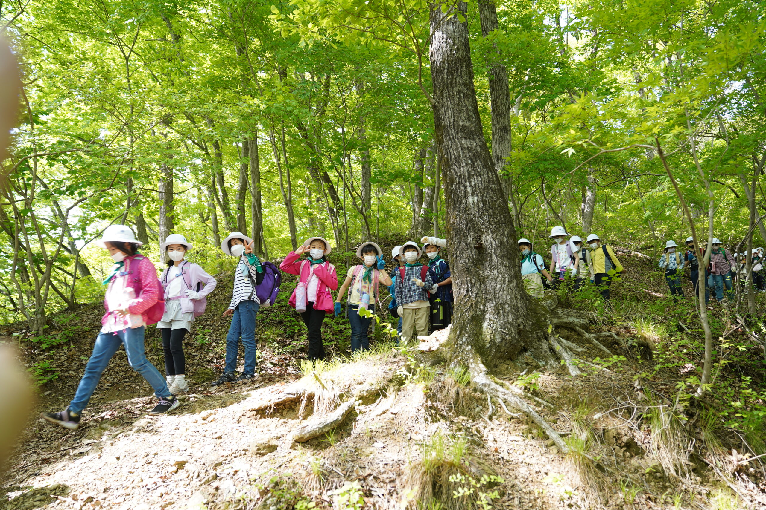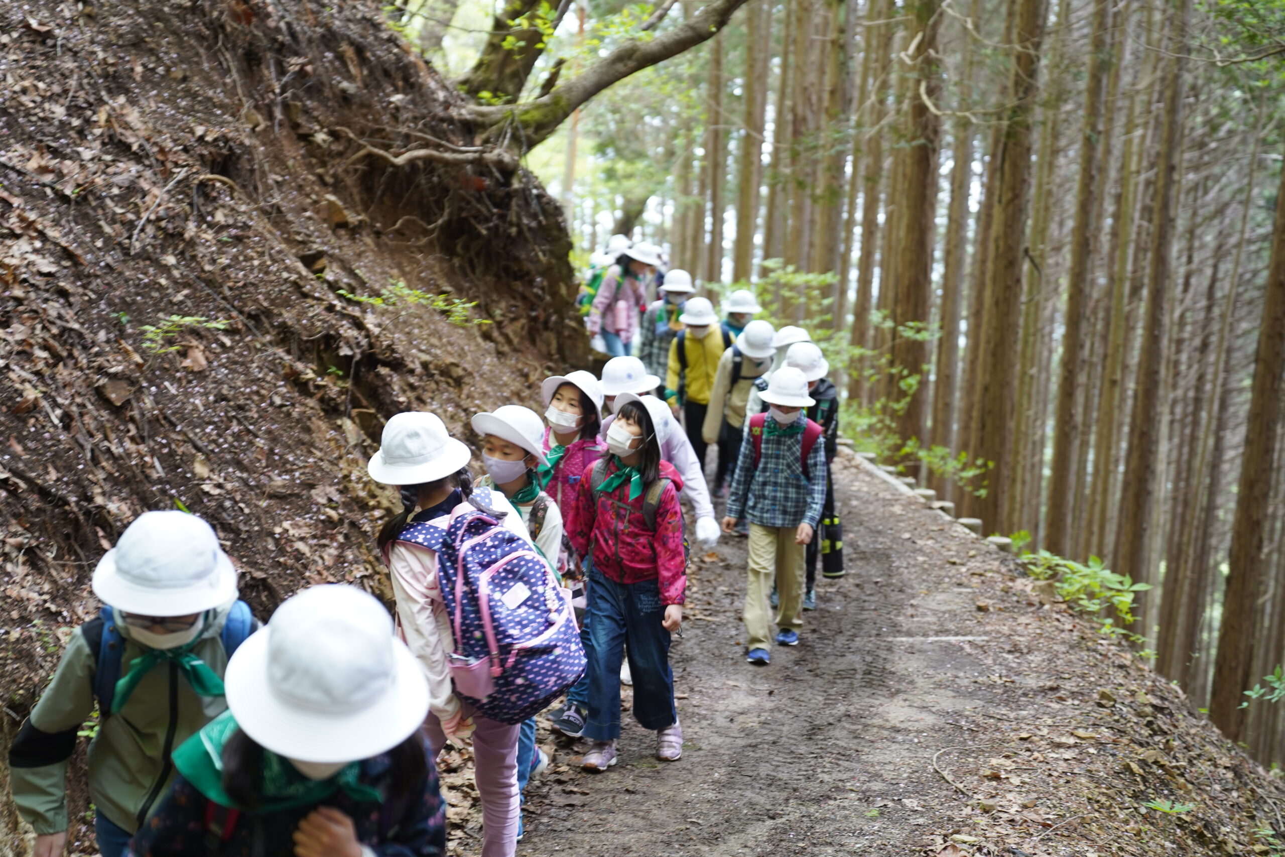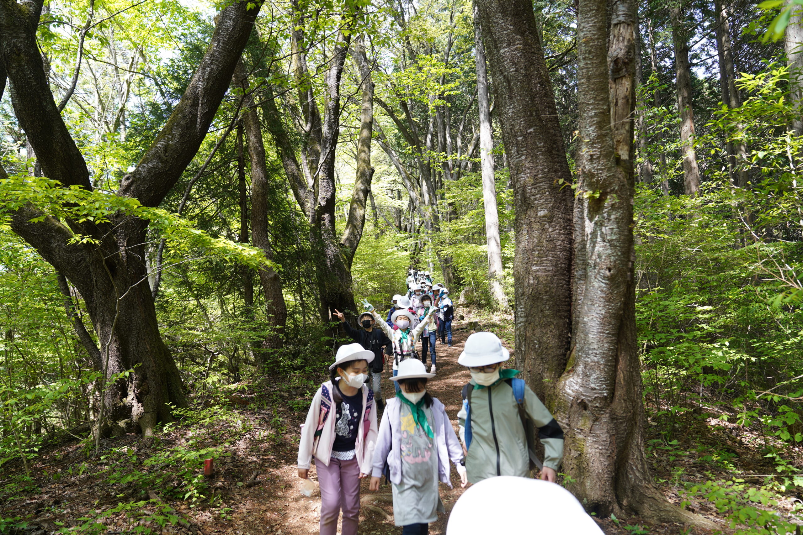この日の天気は曇りで、少しひんやりした空気の中、子どもたちは山頂を目指します。