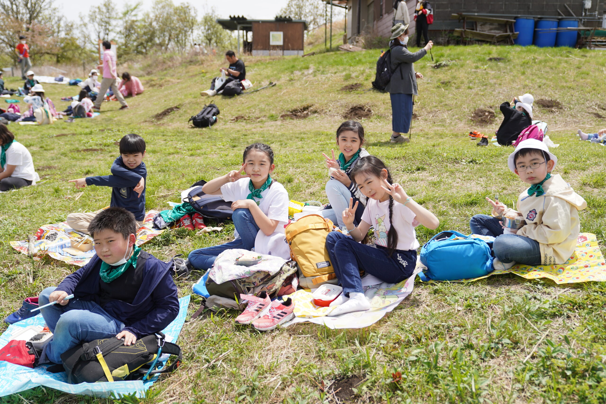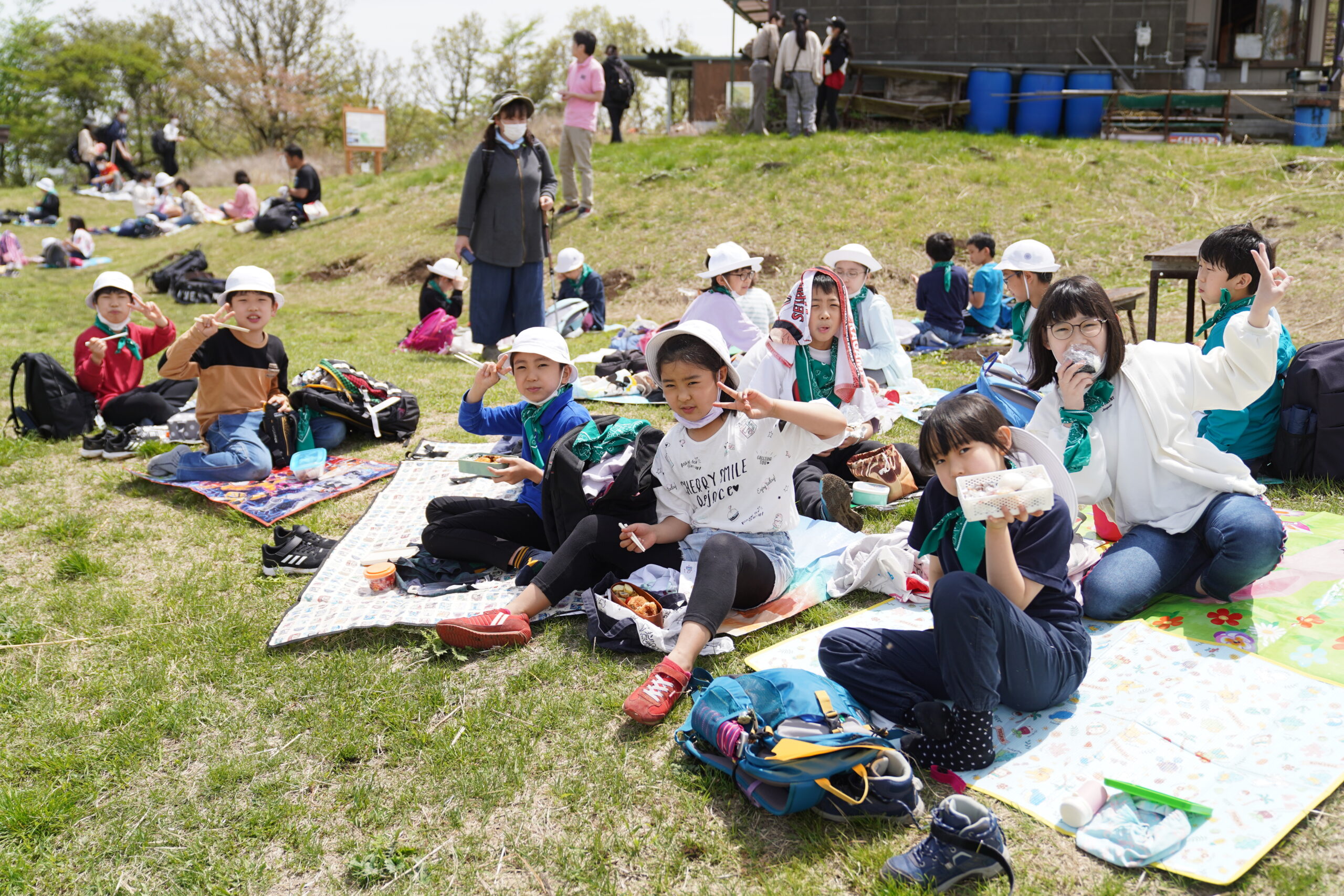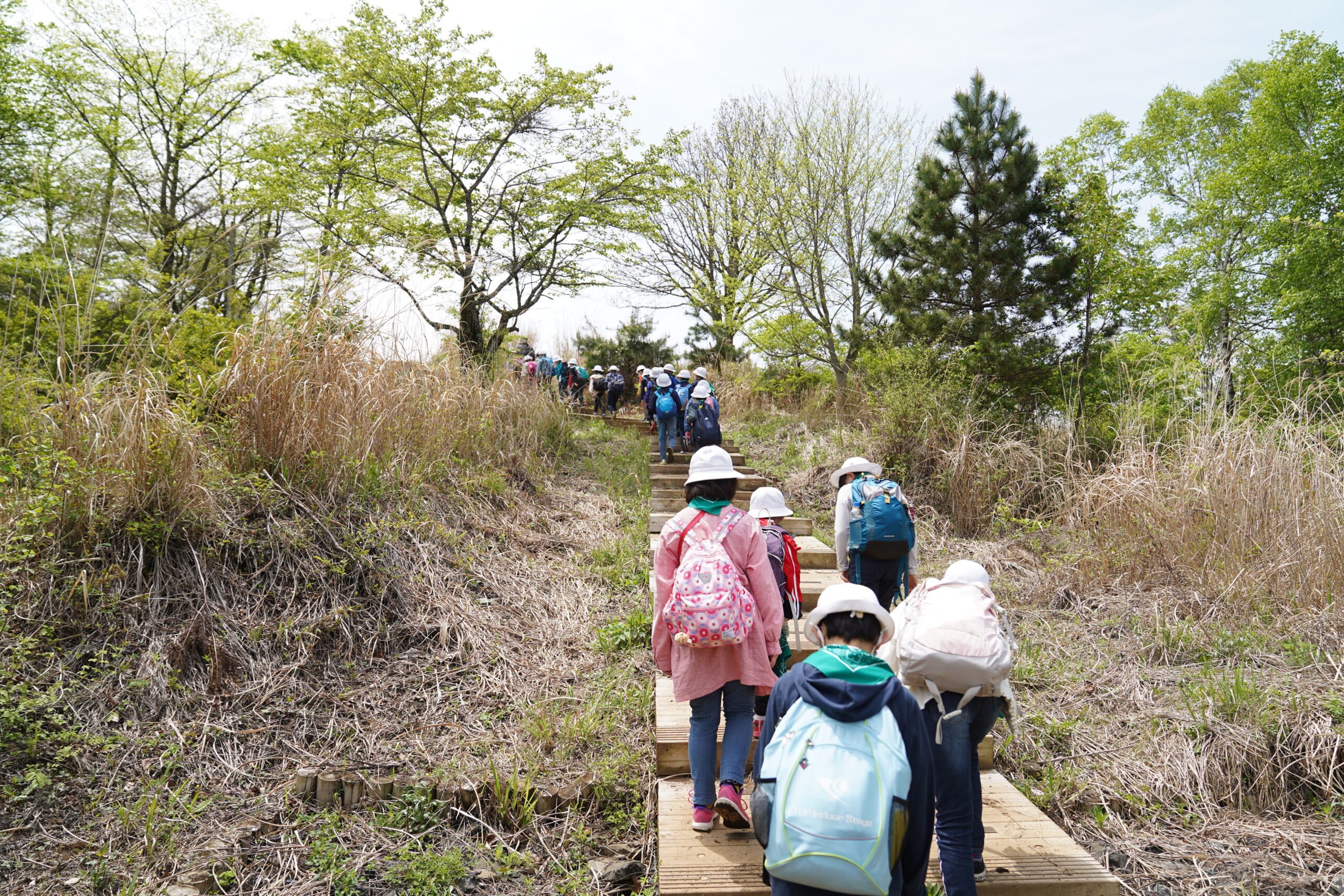 この日の天気は曇りで、少しひんやりした空気の中、子どもたちは山頂を目指します。