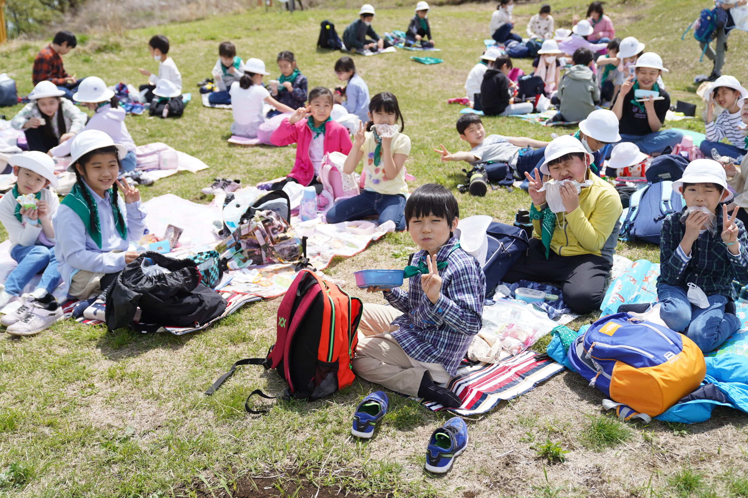 4年生は、春の遠足で陣馬山に山登りに行きます。