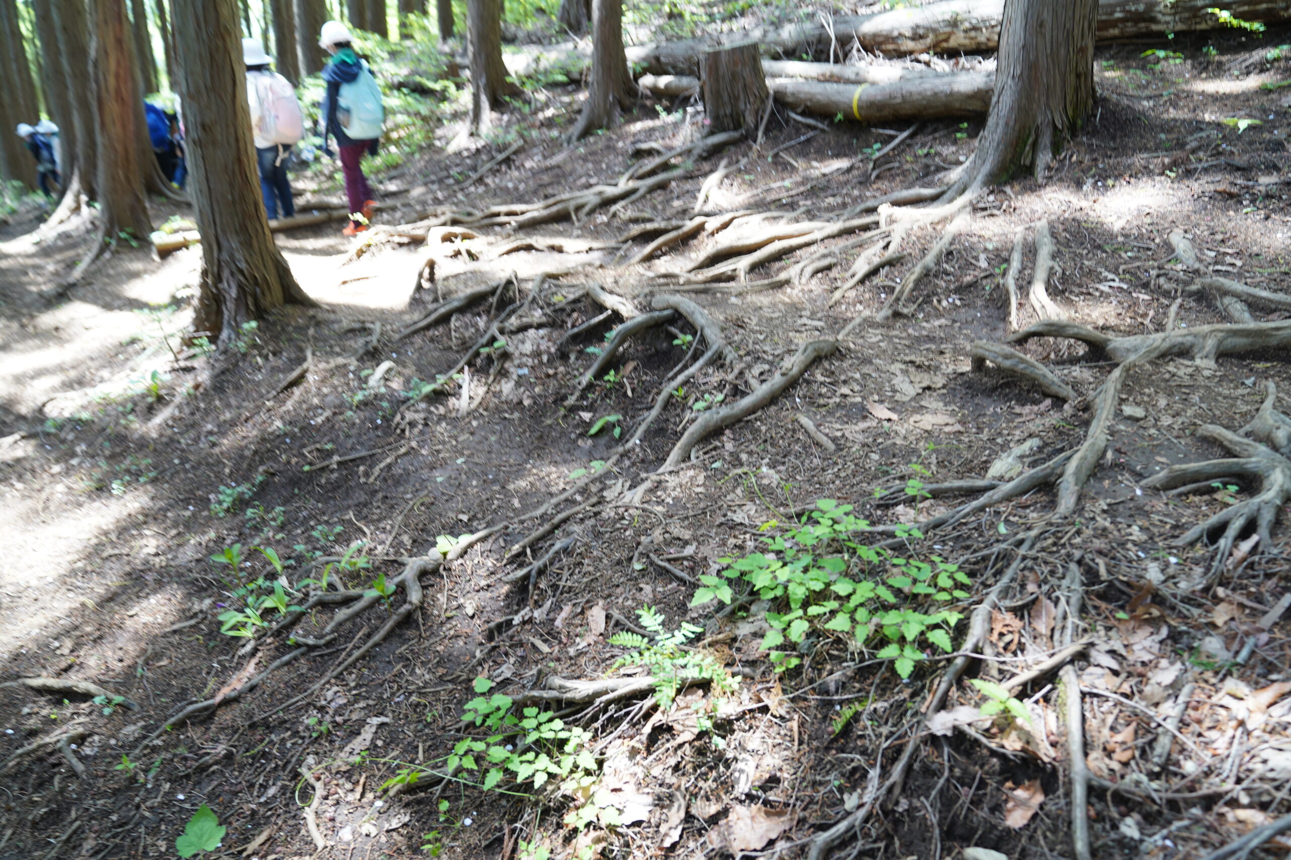 階段や木の根、狭い所もあり、気をつけながら進みました。