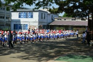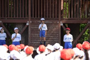 コロナ禍の中で、朝会はオンラインや低学年、高学年に分かれて実施されていましたが、本当に久しぶりの全校朝会です。